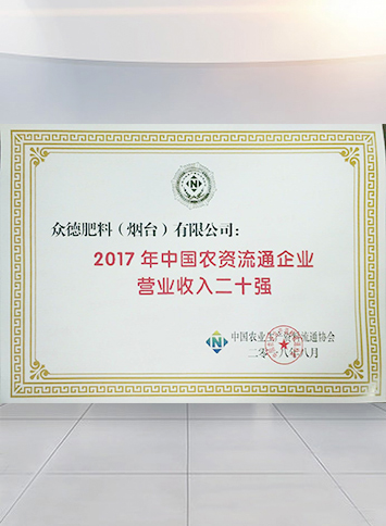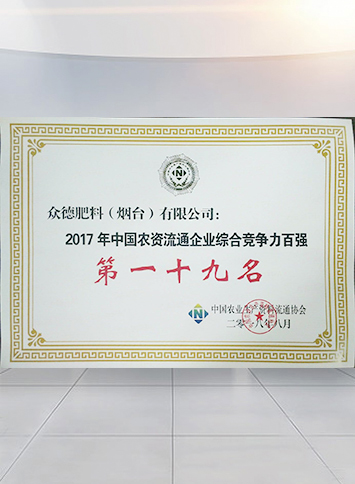 • 2017年中國農(nóng)資流通企業(yè)綜合競爭力百強第19名