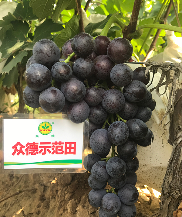 到了9月份采收的季節(jié),姜師傅的2畝眾德套餐示范園喜獲豐收,不但果穗整齊如一,果實色澤鮮艷,糖度也比他的那3畝葡萄高出1.5度,裂果現(xiàn)象幾乎沒有,被一個果商包銷一空。而他的其它3畝仍按他以往的方法管理,和往年沒有什么改觀。同樣一塊地出現(xiàn)兩個截然不同的結(jié)果,姜師傅這下服了。當年的底肥和次年的全年用肥,他全部5畝葡萄都用上了眾德套餐。